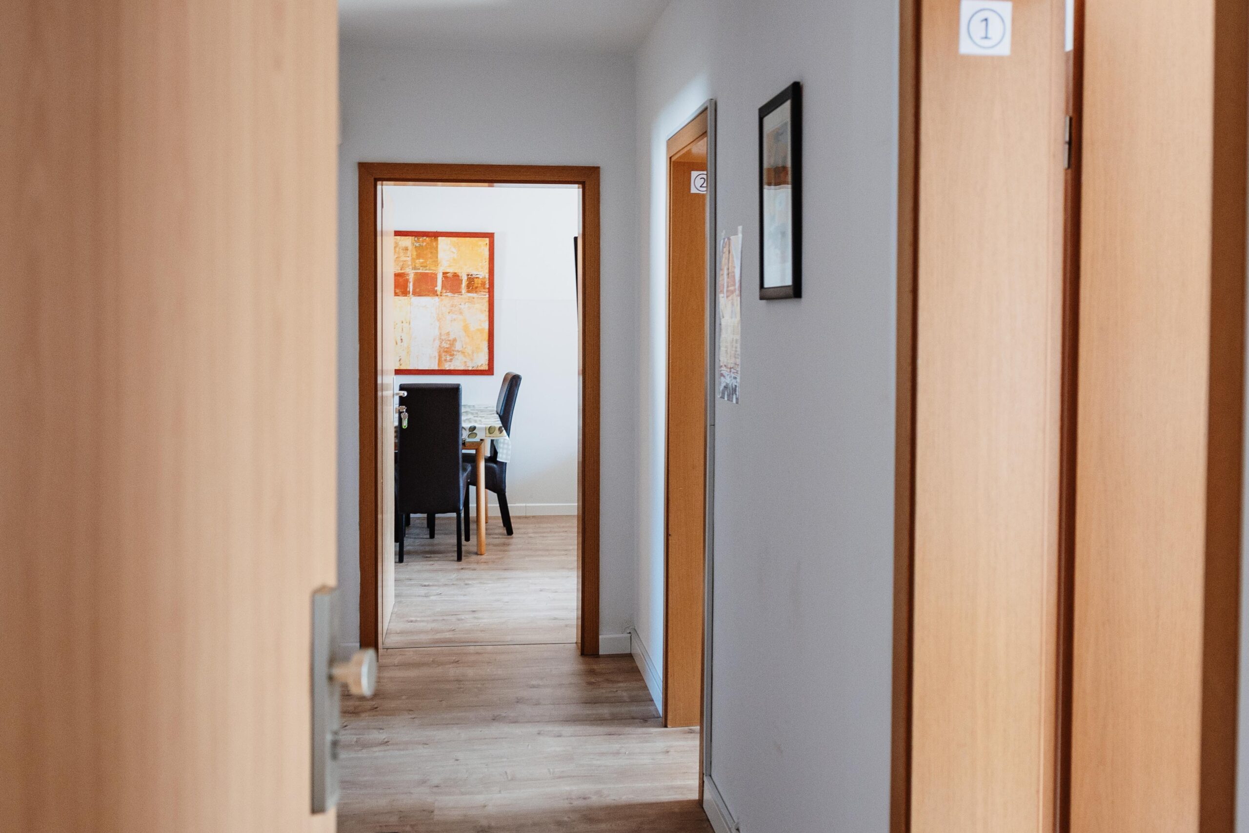 Die Monteurzimmerwohnung in Brilon bietet auf 72 m² Platz für bis zu 5 Personen. Sie befindet sich im 1. Obergeschoss und verfügt über zwei Doppelzimmer mit Einzelbetten sowie ein Einzelzimmer, ideal für Gruppen oder Kollegen, die gemeinsam reisen.